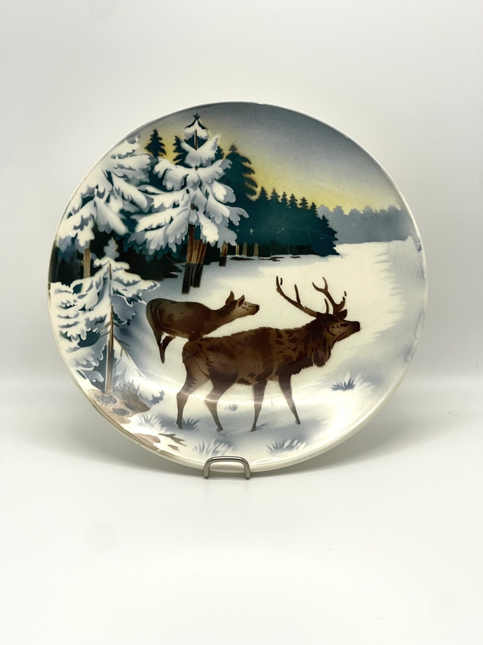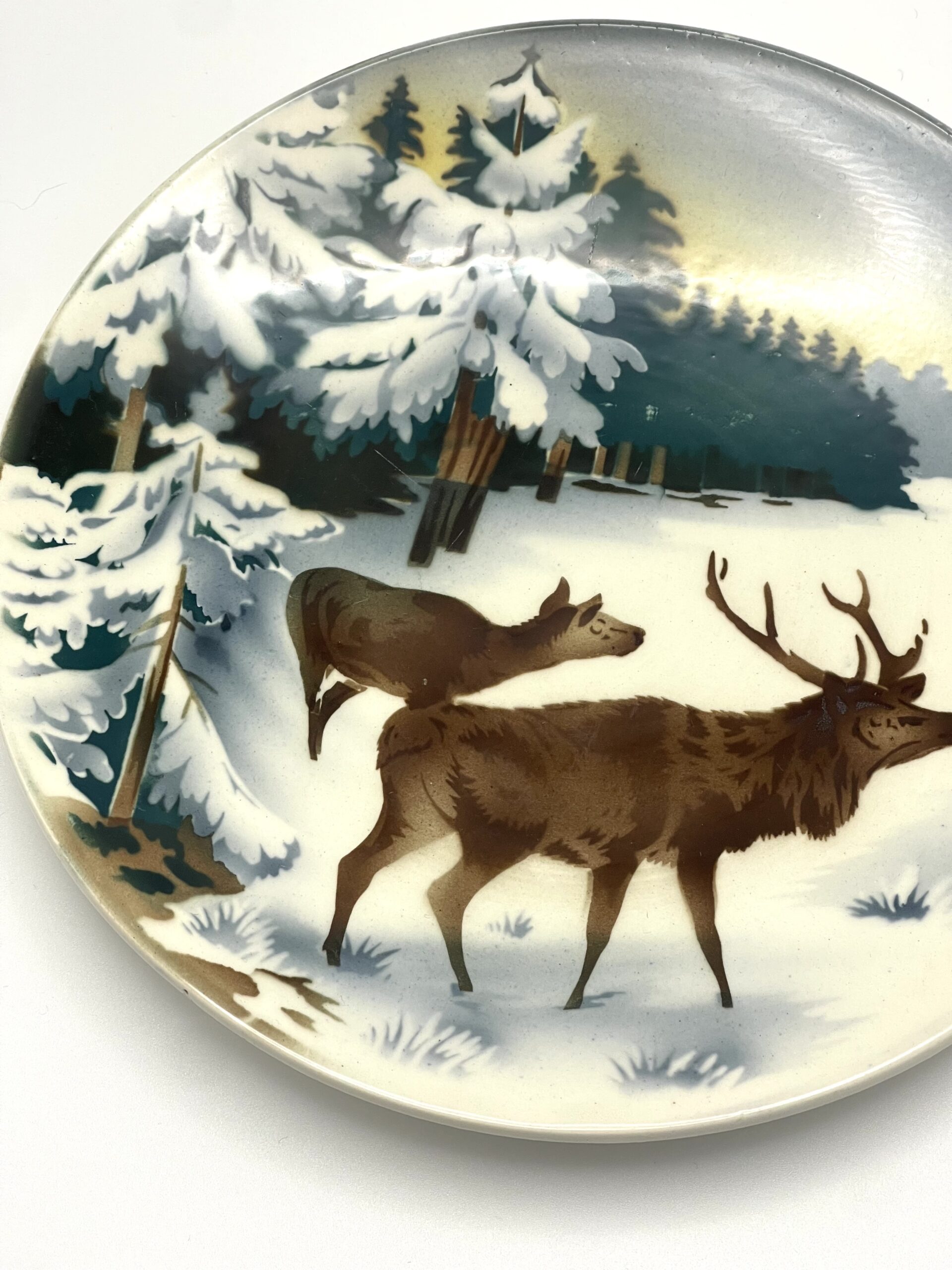 Paysage d’hiver avec cerf et biche